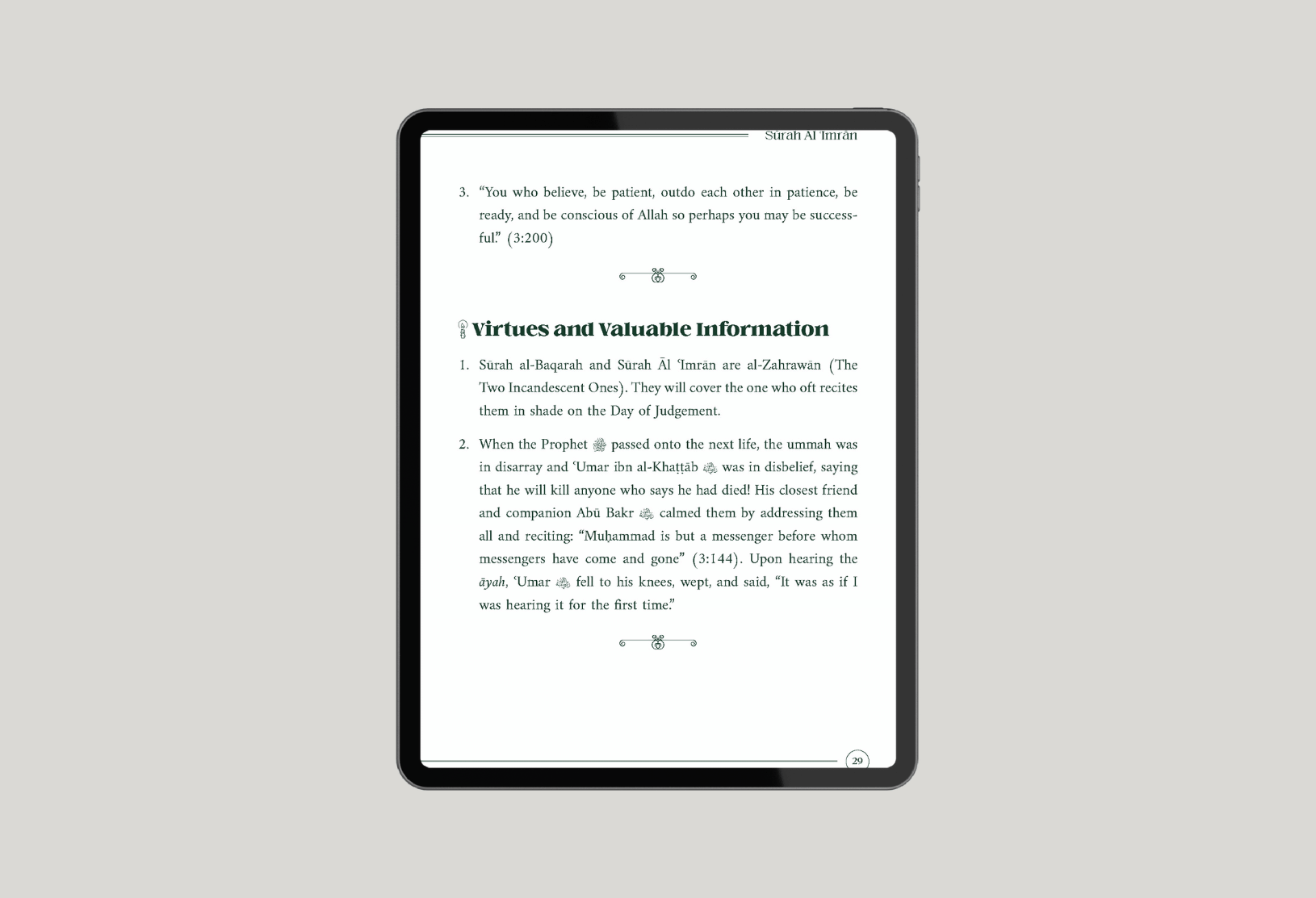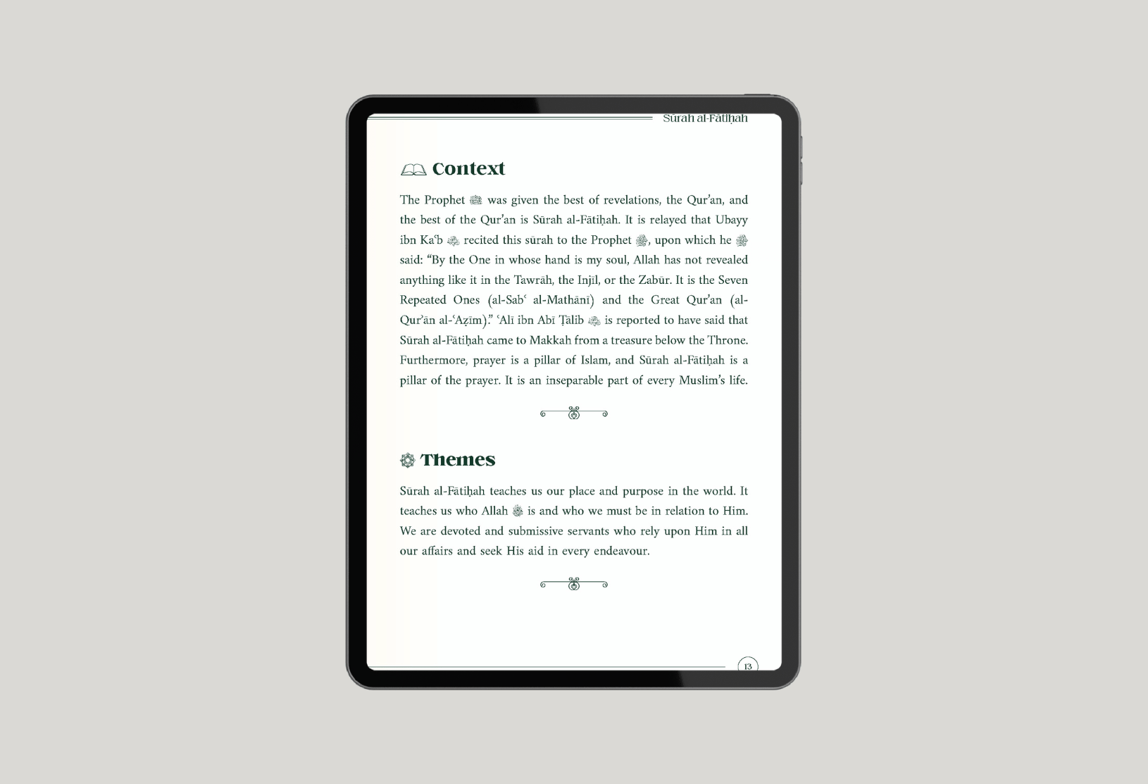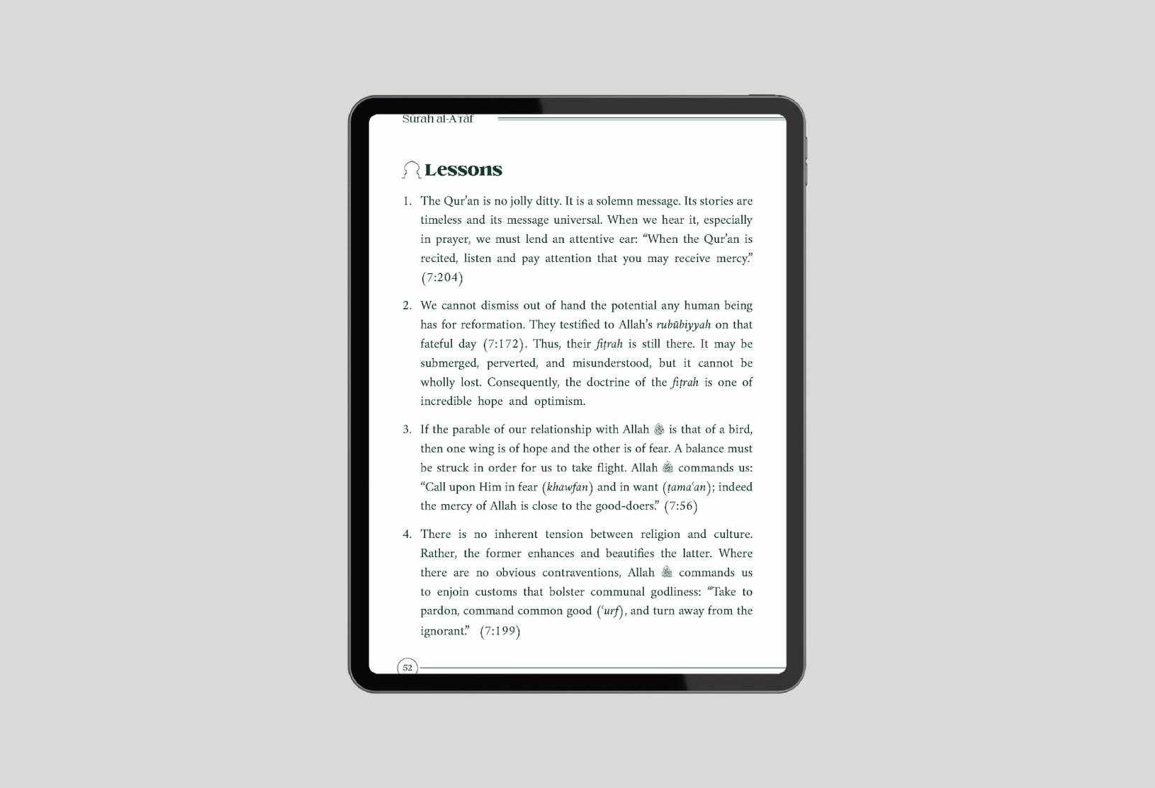An Introduction to the Surahs of the Quran aims to answer these questions and more. It offers an overview of every sūrah of the Qur’an, along with unique features of each one, its themes, virtues, and relevant valuable information. By the grace of Allah, through this text, you will be able to build a deep relationship with the Book of Allah and consequently its author, understanding what He wishes of you and how you can attain both worldly and after-worldly success.